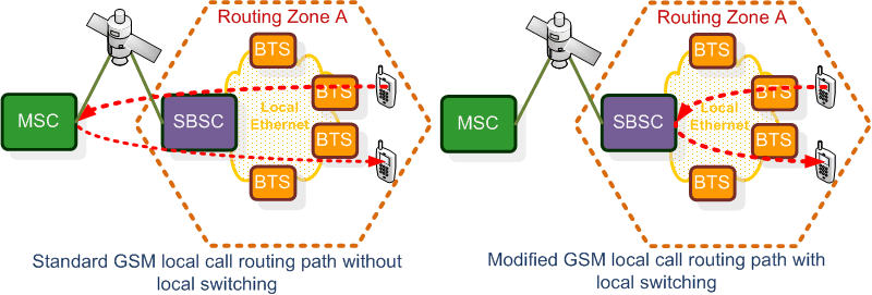 In standard GSM architecture, calls are routing to the MSC even if the calling and the called parties are in the same BSC zone. iRLS function enable the GSM system to route calls locally whenever the calling and called parties are in the same BSS zone; hence saving the backhaul transmission bandwidth. iRLS only controls the routing of the call traffic, the call signaling is still under the control of the host MSC. iRLS is integrated in UltraWAVE MSS and works with iPALIM function.